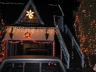 I told you he was crazy, didn't I? He just finished with the lights last night--he did get held up a little bit by the rain, though. Crazy or not, he is one hell of a Christmassy illuminator.